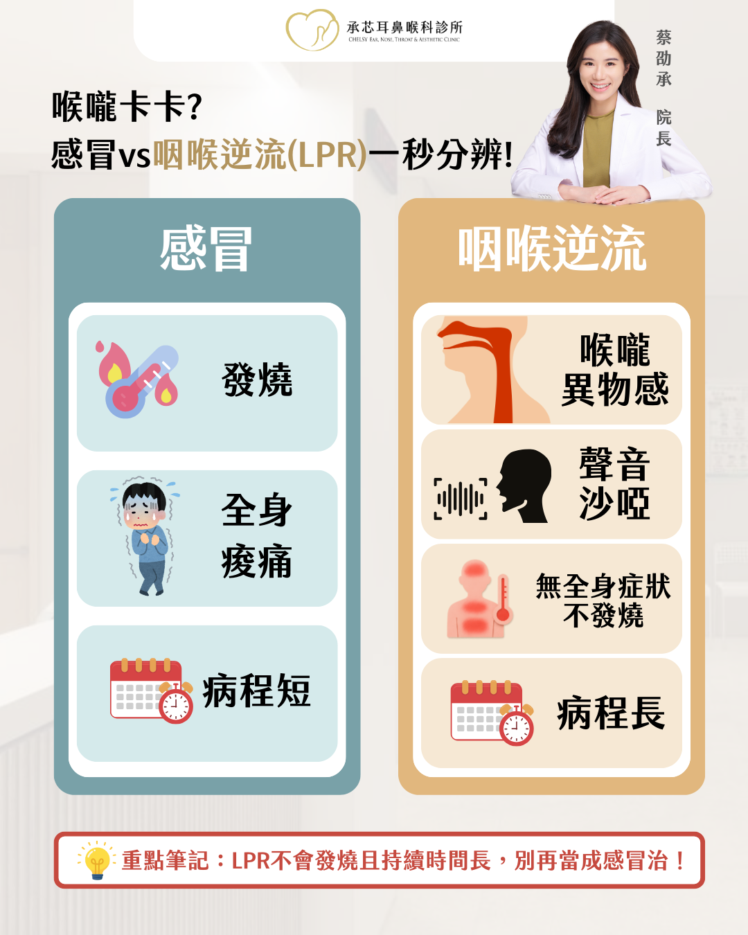 大家熟知的胃食道逆流通常會有「火燒心」或酸水湧上來的感覺。但咽喉逆流 (LPR) 不同,它不一定會有胸口灼熱感,因此常被忽略 。