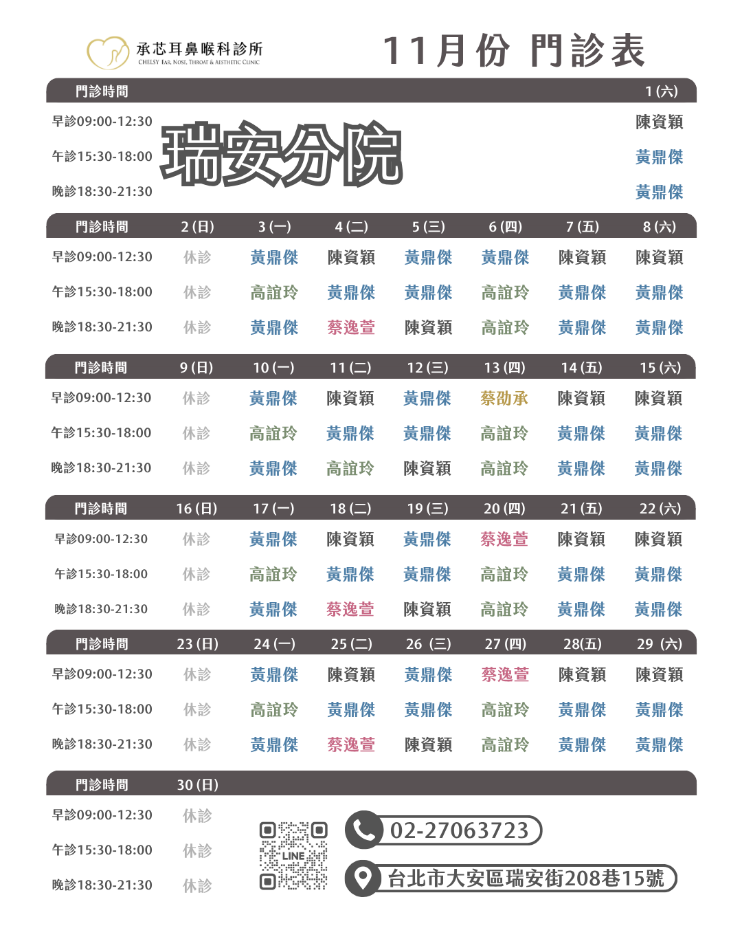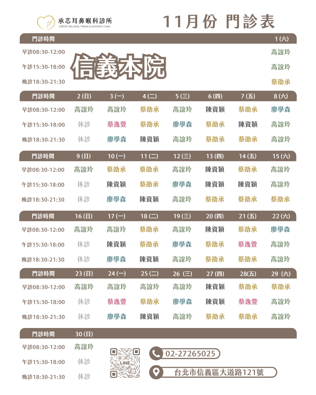 2025年11月份門診表