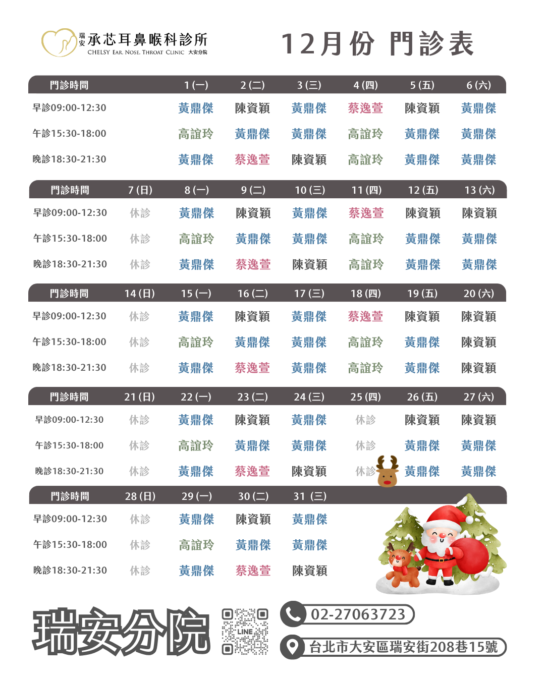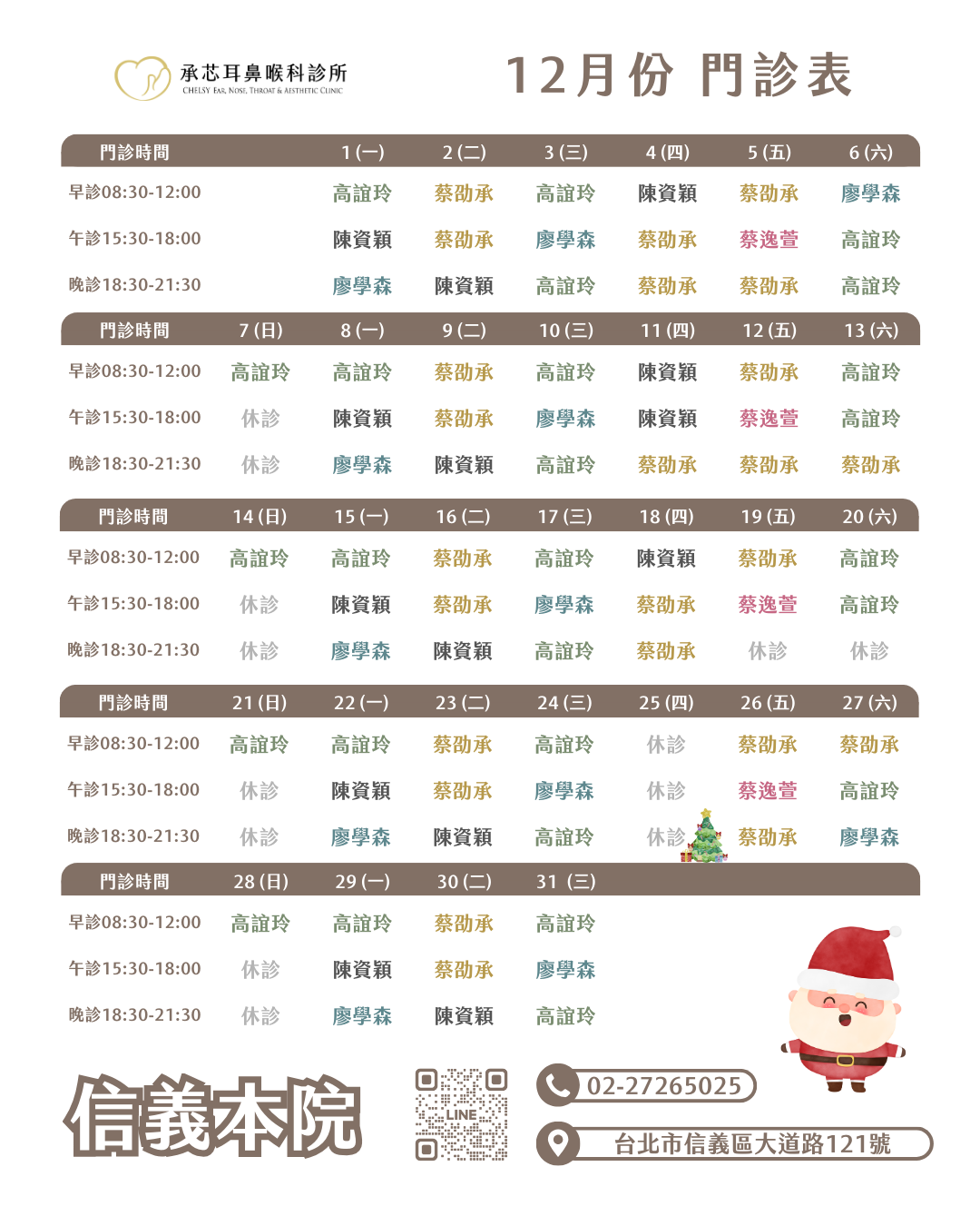 2025年12月份門診表